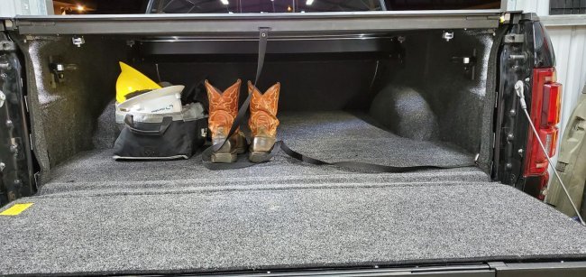 PP термопластичний полімер по суті звичайний пластик, але завдяки інноваційній розробці обшивка м'якого вкладиша має унікальний зовнішній вигляд і всі переваги та комфорт килимового покриття. Будучи відмінним захистом від пошкоджень, витримує найсуворіші випробування, від гравію та піску до активних хімічних складів при цьому на нього не впливає ультрафіолет і відсутнє вицвітання. Основа чітко повторює контур внутрішніх вигинів вантажної частини Ford F-150 2015-2021 і прилягає без утворення порожнеч, залишаючи у вільному доступі такелажні гаки та освітлення. Не ковзна площина не дозволить вантажу переміщатися завдяки пружній основі виробленої з матеріалу застосовуваного в рятувальних жилетах, який не вбирає розчини і на зовнішності не утворюється ні цвіль ні грибок. Очистити від сміття та бруду можна легко за допомогою шланга та миючих засобів, а залишки вологи можна видалити, відкривши застібку блискавку по периметру дна корита.