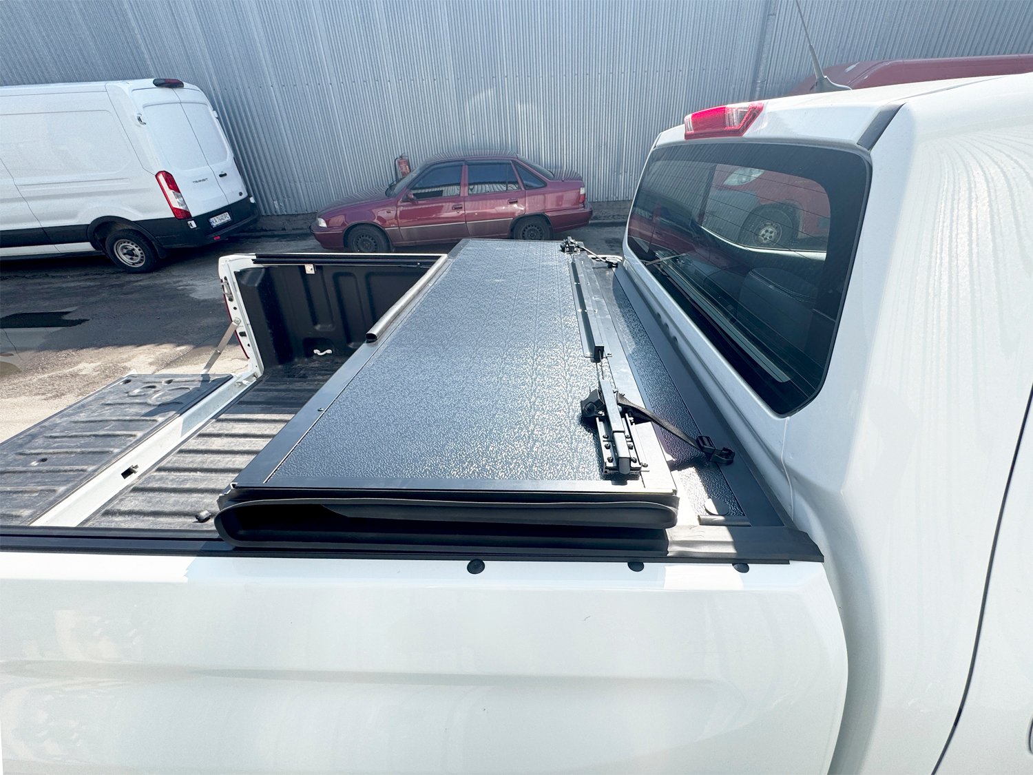 Виготовлена з алюмінієвих панелей, що складаються в бічні напрямні вона не поступається за міцністю односекційним пластиковим кришкам і ролетам. За рахунок вертикальної фіксації кришки доступ до кузова максимальний і зіставний з м'яким тентом на пікап.