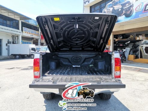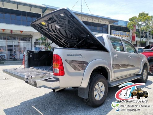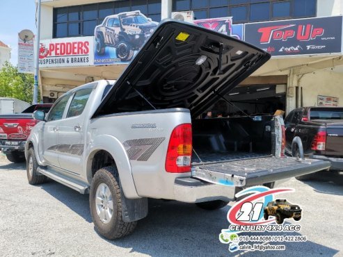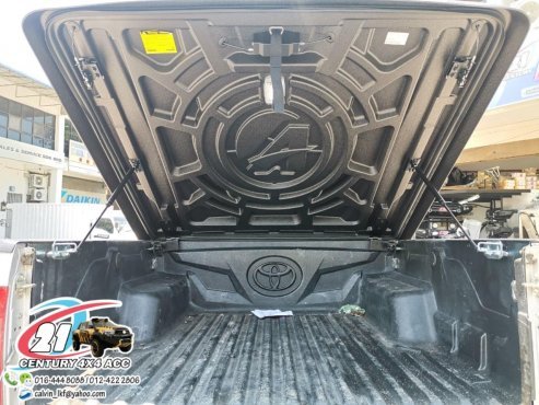 - Почнемо з чудових функціональних особливостей, якими володіє складна кришка. Водієві не треба докладати жодних фізичних зусиль, як-то «напружуватися» для того, щоб отримати доступ до вантажної платформи. За вас «відпрацюють» газові амортизатори, що піднімають тент Hilux під кутом 45 °.
