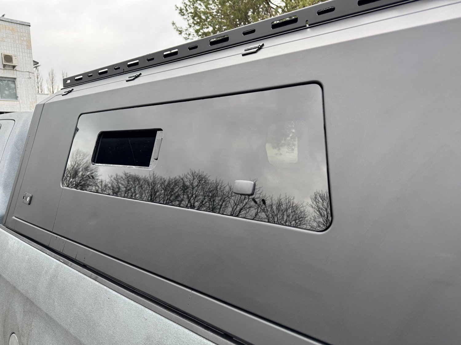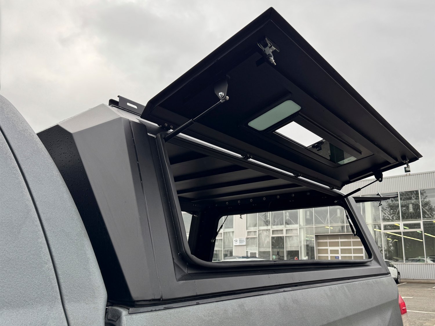 В основі жорсткого даху лежить збірний корпус, виготовлений з алюмінієвого сплаву. У бічні двері аксесуара можуть бути інтегровані безпечні загартовані стекла з кватиркою, що відкривається.