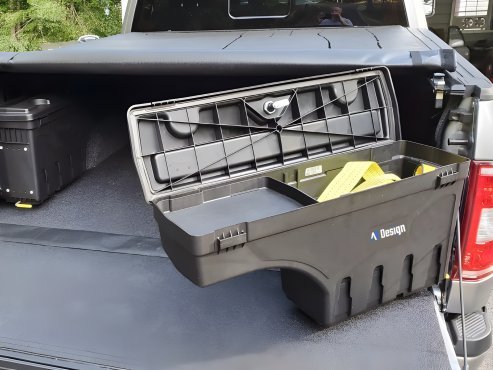 Особливістю цієї моделі є зручний відкидний механізм, що дозволяє максимально ефективно використовувати простір кузова. Усередині ящик має продуману систему відділень, що дозволяє раціонально організувати зберігання інструментів, обладнання та особистих речей, захищаючи їх від пилу, вологи та негоди. Ергономічна кришка з посиленим замком забезпечує надійний захист вмісту від зовнішніх впливів та стороннього доступу.
